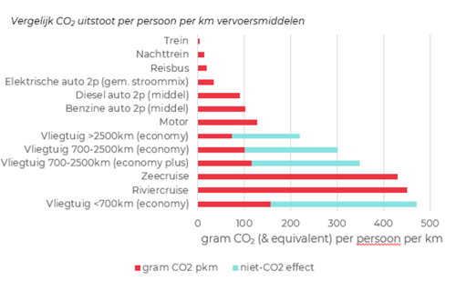 > Het ecologische effect is groot. Het effect van de keuze voor mindere en/of schonere schepen is direct duidelijk en te berekenen. De CO2-uitstoot per passagier per dag is 2 tot 3 keer zo hoog als die van een gemiddelde autovakantie. Een directe bestuurlijke keuze voor walstroom (waarbij een schip gebruikmaakt van een aansluiting op het elektriciteitsnet van de wal) kan de uitstoot beperken of zelfs naar nul terugbrengen. Wanneer deze stroom ook nog eens groen is, is er geen CO2-uitstoot. Een gemakkelijke keuze voor de bestuurder. De aanleg van walstroom is echter kostbaar en wordt belemmerd door netcongestie. Als walstroom niet beschikbaar is, draaien schepen op dieselgeneratoren. De uitstoot van stikstof (NOx) van een schip dat één uur aan wal ligt, is vergelijkbaar met een benzineauto die een jaar rondrijdt. Voor een stad met 300 schepen per jaar staat dit gelijk aan de uitstoot van 5.000 auto’s! Een cruisevakantie met vlucht is qua uitstoot zelfs meer dan 20 keer zo vervuilend als een autovakantie. Dit roept de vraag op welke verantwoordelijkheid een bestuurder moet nemen.